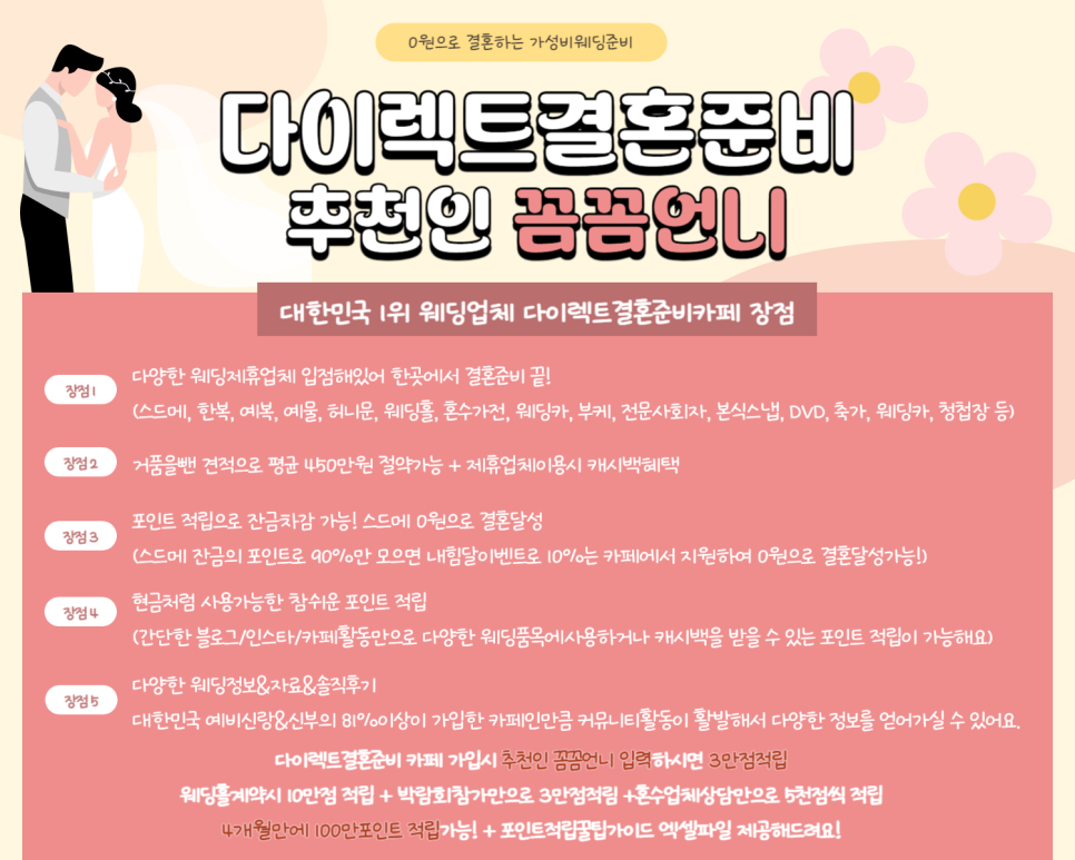 결혼 준비는 쉽지 않지만, 잘 준비하면 멋진 결혼식을 만들 수 있어요. 여러분의 행복한 결혼을 기원합니다!
