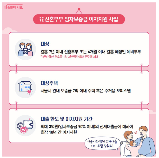 그래서 서울시는 신혼부부를 위해 전세대출 지원 프로그램을 운영하고 있어요. 이 프로그램을 통해 많은 신혼부부들이