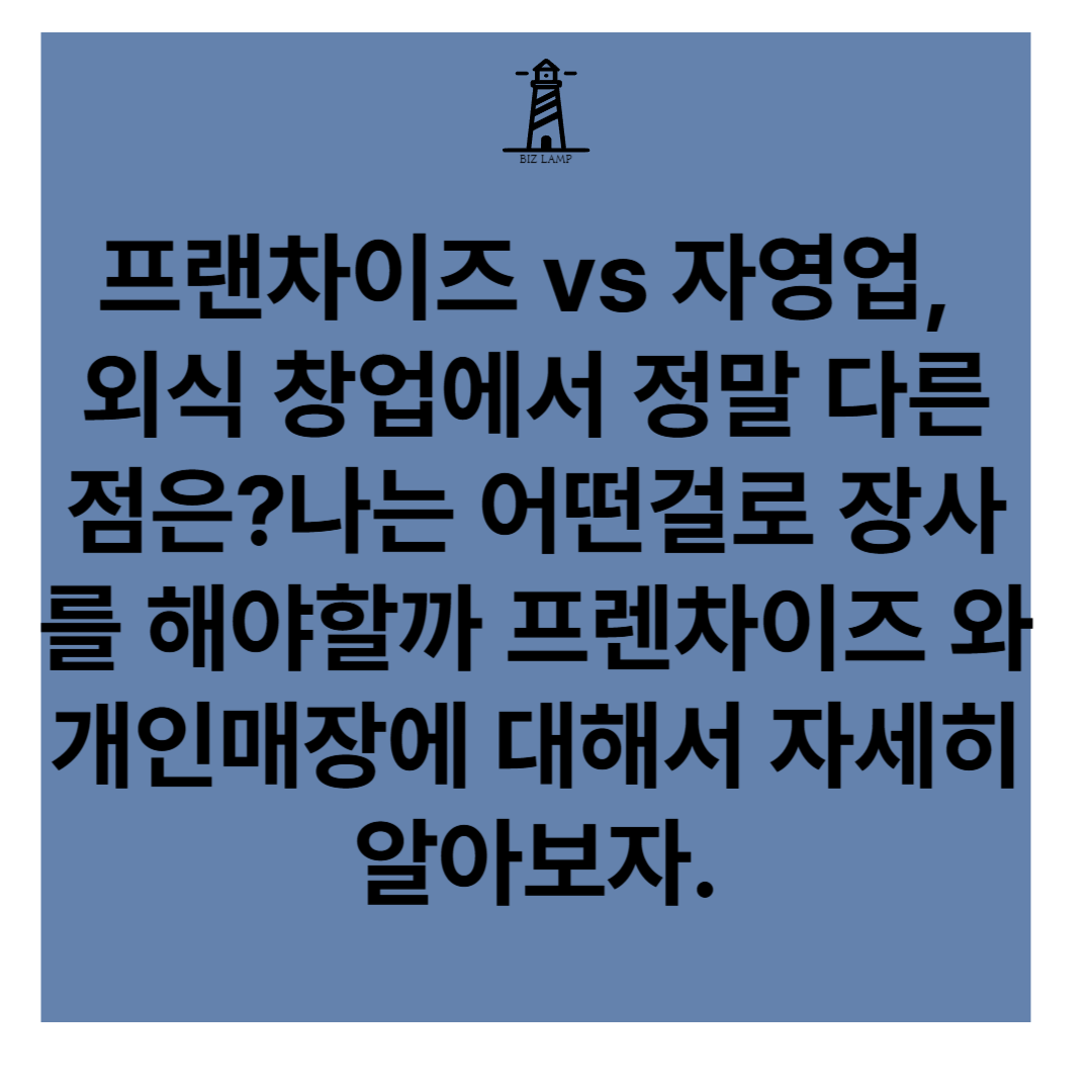 프렌차이즈와 자영업 개인매장중 어떤걸 선택을 해야할지 초기자본에 따라서 선택을 할지 무슨 차이점이 있는지 알아보는 시간을 가져보도록 하겠습니다. 정답은 없는 장사의 세계에서 각자의 장단점과 함께 좋은 선택을 할수있는 도움이 되길 바랍니다.