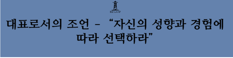 대표로서의 조언 – “자신의 성향과 경험에 따라 선택하라”